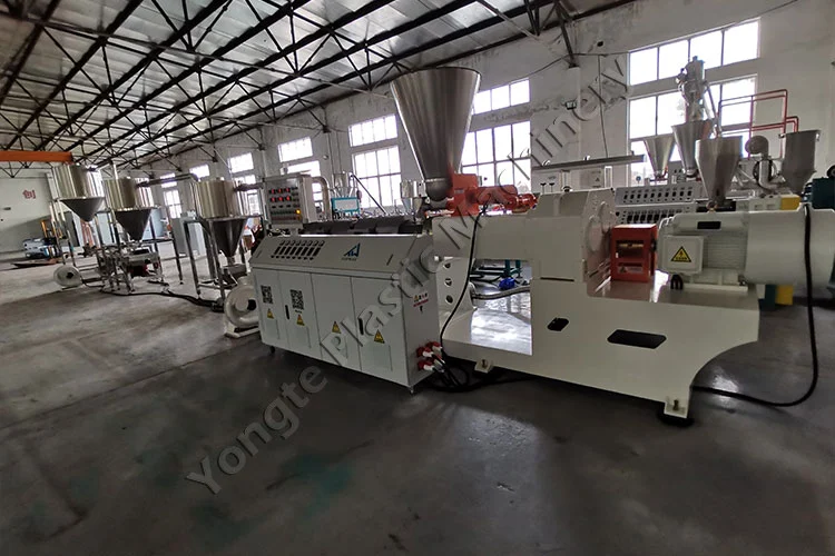 В 2024 году мы разработали специальную машину для гранулирования ПВХ-смесей для польского клиента, специально разработанную для производства гранул маточной смеси ПВХ из переработанного ПВХ и наполнителя CaCO₃. Содержание наполнителя CaCO₃ можно гибко регулировать в диапазоне от 40% до 80% в соответствии с производственными спецификациями клиента. Ключевые компоненты включают в себя автоматический питатель, конический двухшнековый экструдер SJSZ80/156 (двигатель мощностью 75 кВт с преобразователем частоты ABB, потребляющий ~50 кВт при стабильной работе), матрицу для горячего гранулирования для равномерной резки гранул, а также трехступенчатую систему быстрого воздушного охлаждения и транспортировки из нержавеющей стали 304. Машина достигает производительности 300-400 кг/час и рассчитана на непрерывную работу 24 часа в сутки, 7 дней в неделю без простоев. Установка прошла без проблем при поддержке команды экспертов Yongte, которая предоставила комплексную помощь. Обучение на месте установки после установки позволило персоналу клиента умело управлять оборудованием, а удаленная техническая поддержка с помощью видеоинструкций обеспечила оперативное решение любых проблем, поддержание бесперебойного производства и максимальной производительности.