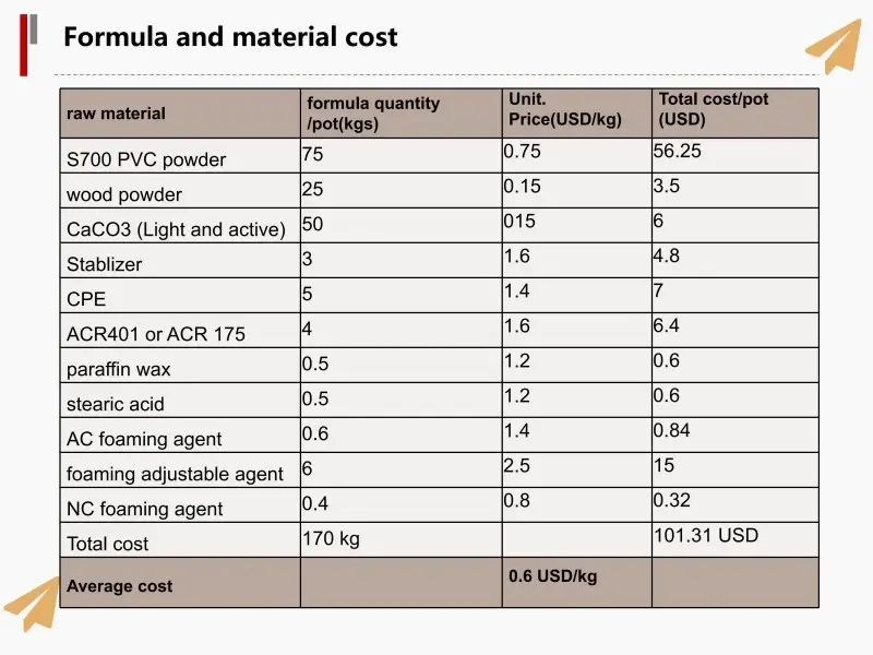 Сырье для изготовления дверных панелей и дверной коробки из ДПК включает в себя: смолу ПВХ, древесный порошок, CaCo3 и химические добавки. Производитель может корректировать рецептуру в соответствии с потребностями рынка.